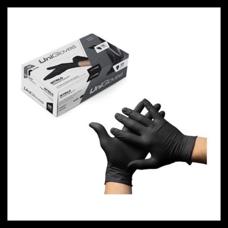 Luva Preta Descartável Nitrilica Latex da marca Unigloves sem pó / 10 e 20 unidades de luvas