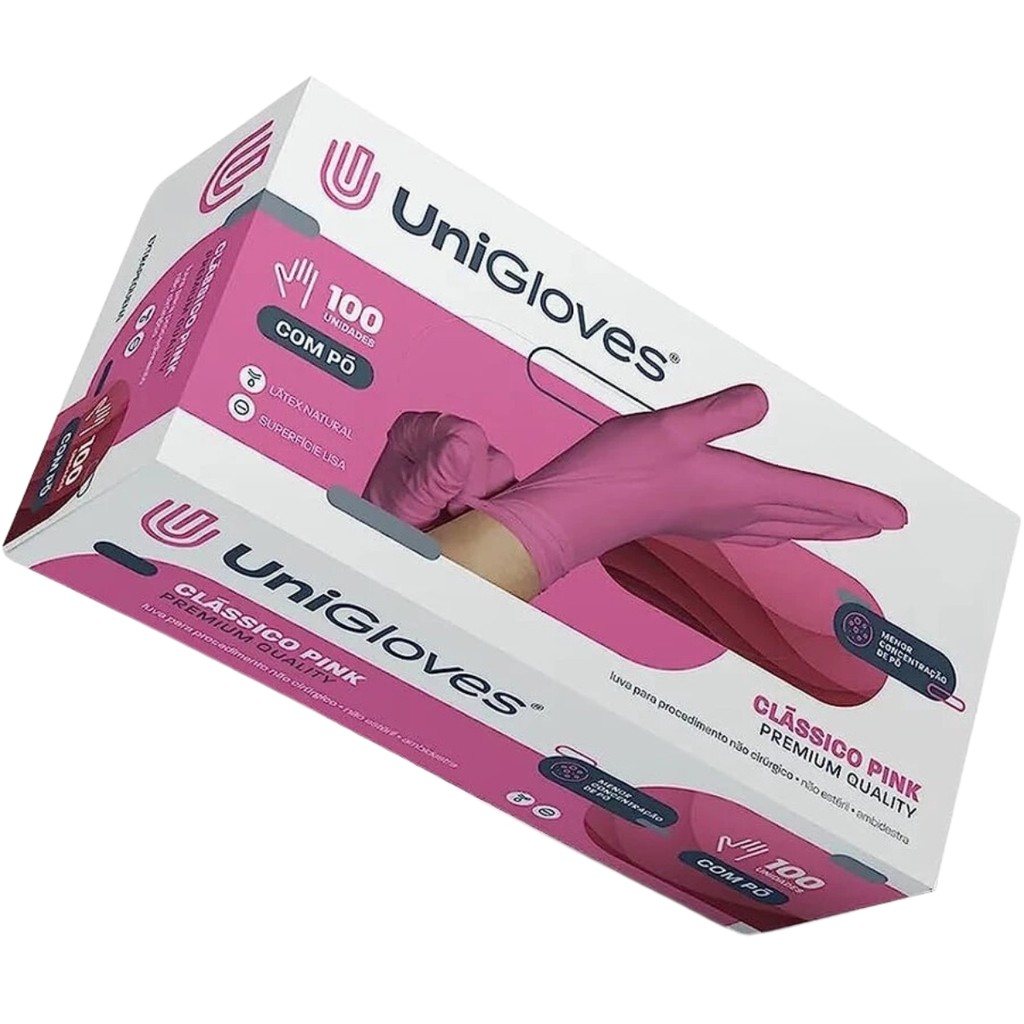 Kit Com 3 Caixas Luva Látex Rosa Pink Descartável 300 Unidades Unigloves