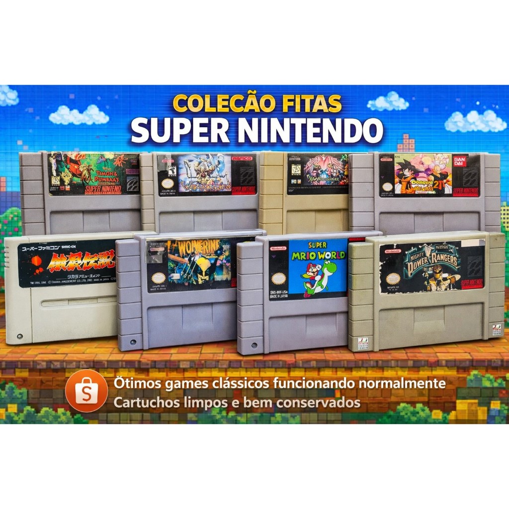Kit 8 Jogos Super Nintendo SNES – Super Mario World, Dragon Ball Z, Wolverine, Power Rangers