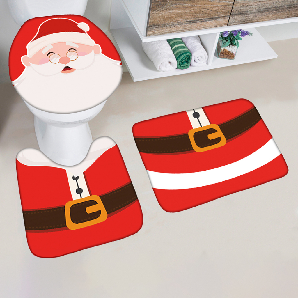 kit jogo tapete banheiro Estampas de Natal tamanho PLUS antiderrapante 3 peças