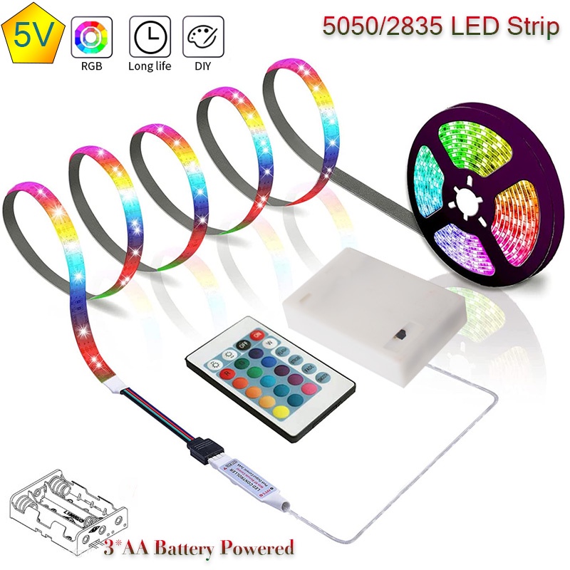Fita Rgb Tira Conduzida Bateria Ope @ @ Rado Smd 5050 Luzes Fita 4aa 4aa Alimentado Por Bateria Ir Rf Controle Remoto À Prova D 'Água Led Tarja