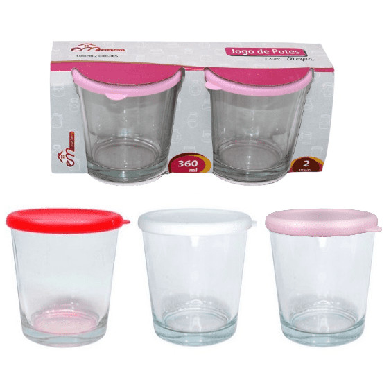 Jogo Pote De Vidro 360ml 4 Peças Tampa De Plástico Colorida