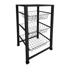 Fruteira Cozinha de Chão Aço com Tampo Mdf 3 Cestos Preta