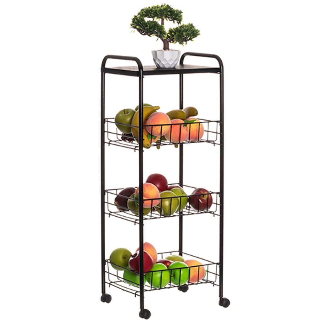 FRUTEIRA DE CHÃO COM RODINHA E 3 CESTOS DE PLASTICOS