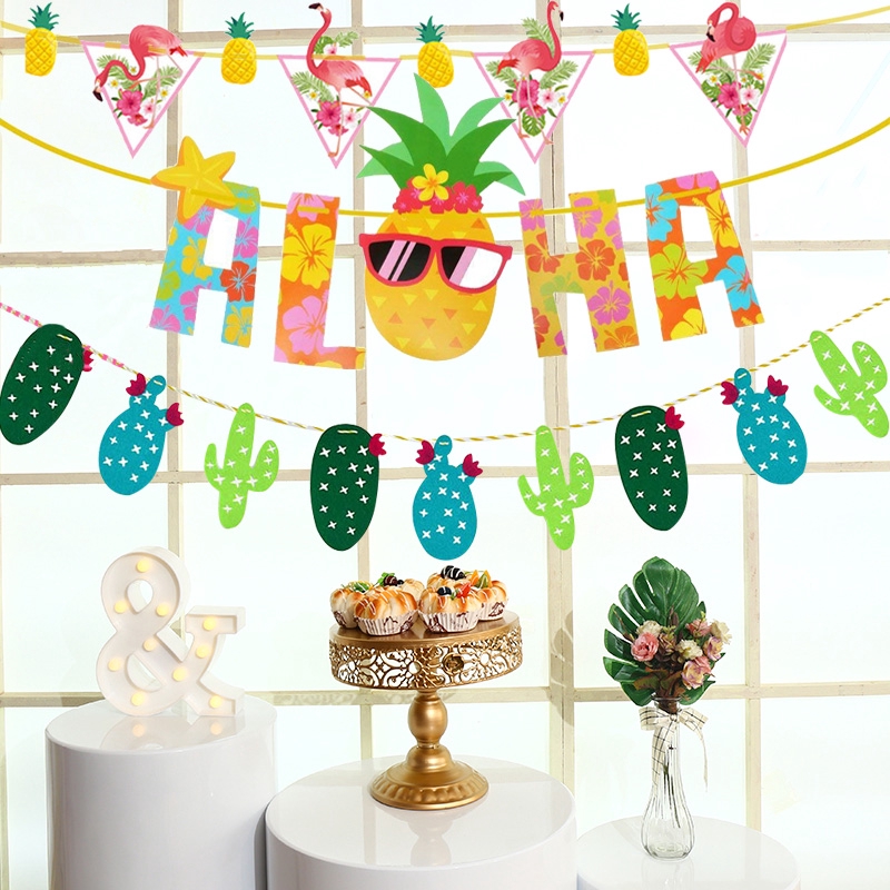 Balões Havaiano Flamingo Tropical Abacaxi Aloha Bunting Banner Festa De Verão