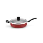 Frigideira Enjoy Reta 24cm Com Tampa De Vidro E Alça - Vermelha