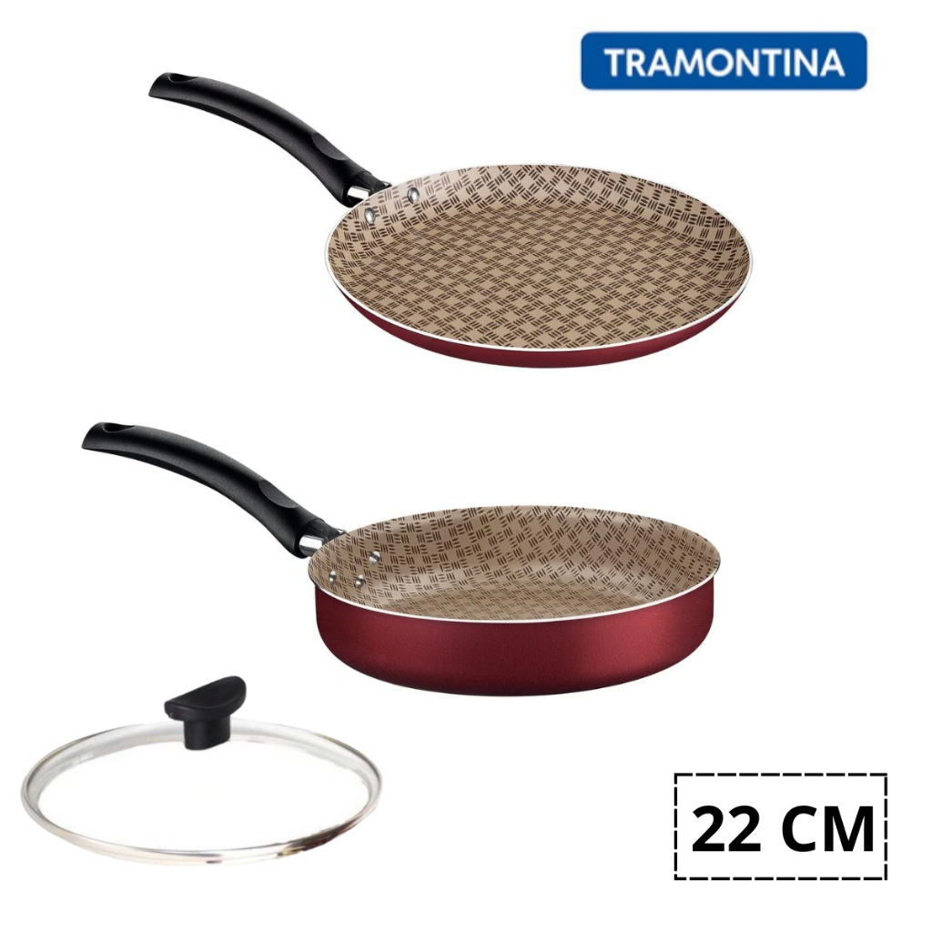 Frigideira Antiaderente Reta + Panquequeira Antiaderente Tramontina com Tampa de Vidro