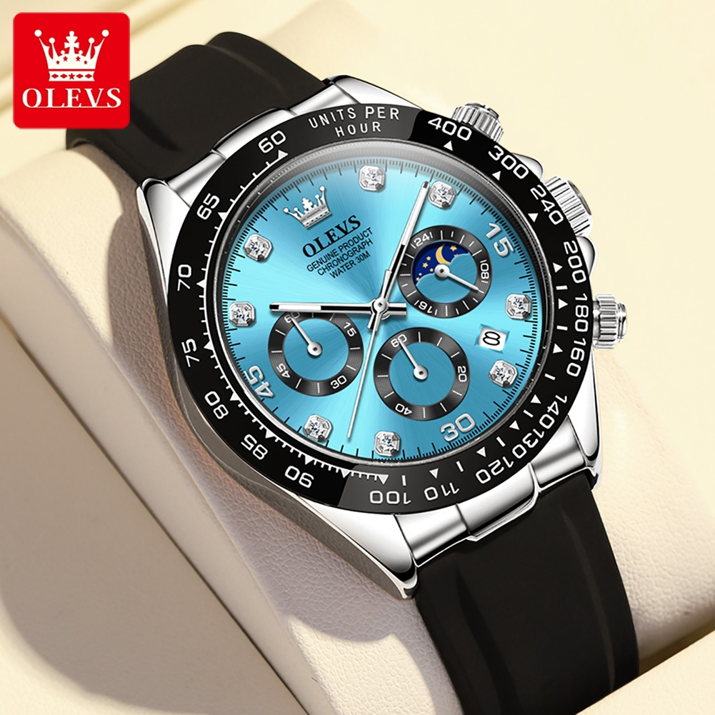 OLEVS 2875 Marca De Luxo Relógio Quartzo Para Homens Pulseira Silicone Cronógrafo Data Automática À Prova Dwaterproof Ág