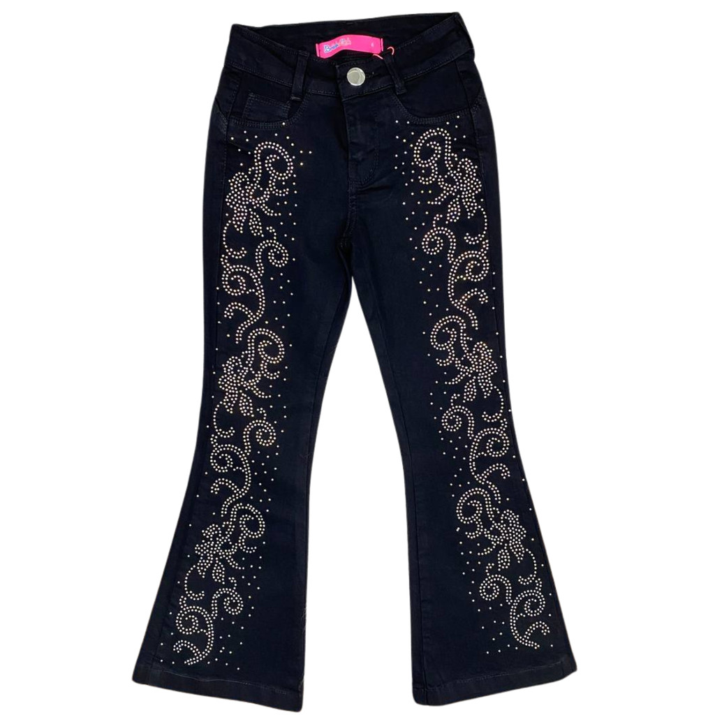 Calça Country Boiadeira Ana Castela Infantil Flare Preta Estilosa Strass Rodeio Agro Brilho Menina