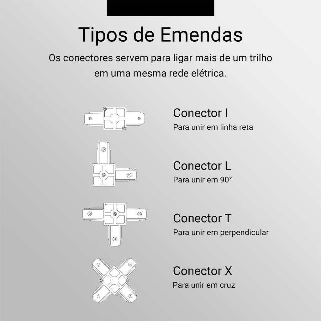 Conector Para Trilho Eletrificado Emenda Reta , T , X ou L 90 Graus Preto Branco