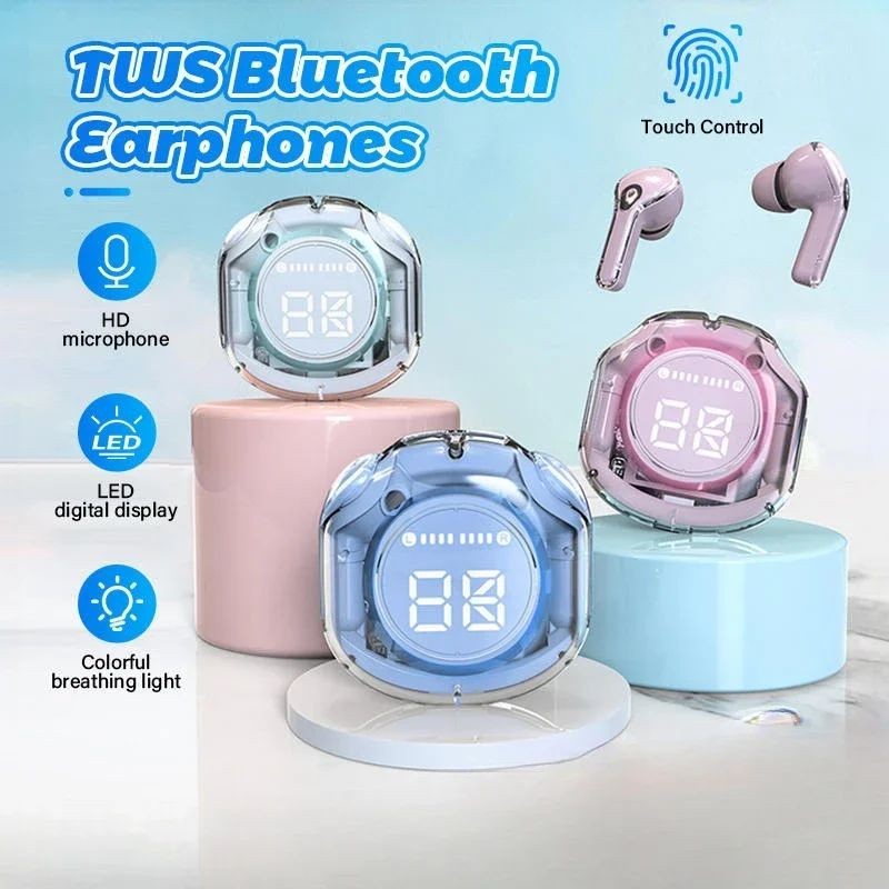 T8 TWS Fone De Ouvido Bluetooth Sem Fio Transparente ENC Com Visor Digital LED Power Fones Som Estéreo Para Esportes
