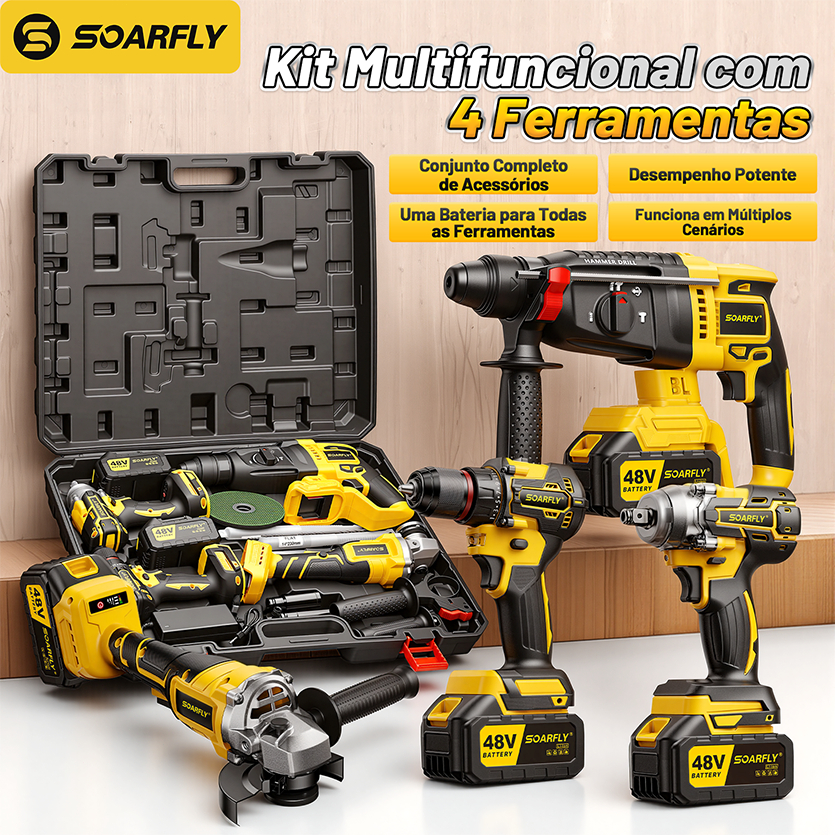 Ferramentas Elétricas Kit 4 Peças A Bateria 48V Completo Martelete Furadeira Esmerilhadeira Parafusadeira E Acessórios
