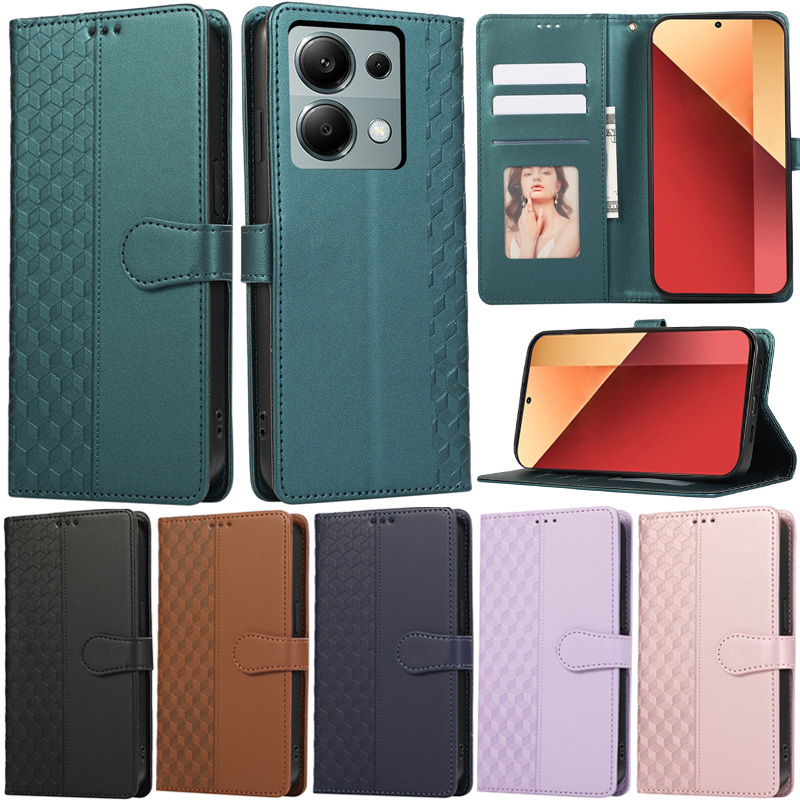 Caixa De Luxo Para Xiaomi 14 13T Poco C65 X5 Pro Redmi 13C 12 4G Nota 13 5G + 5G Emenda Rhombic Designs Carteira De Couro
