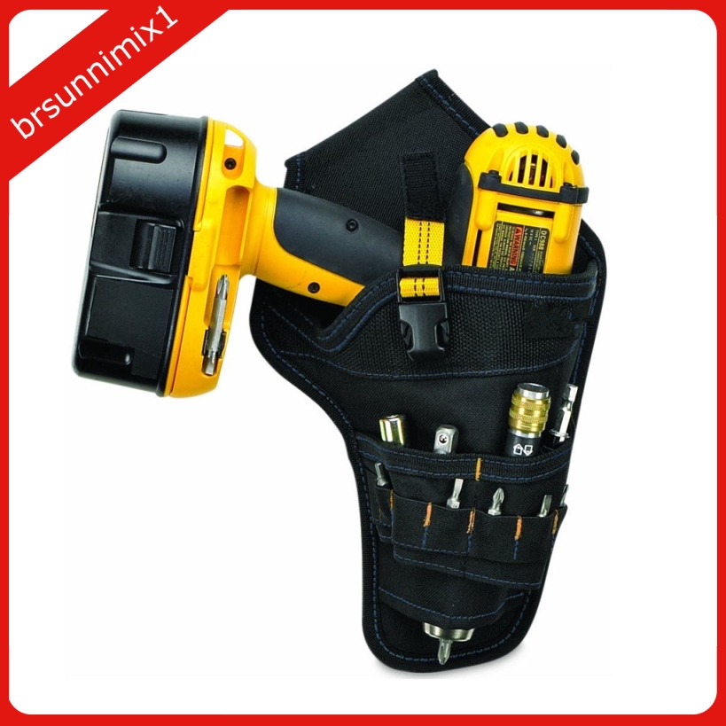 Bolsa de Cinto Ajustável sem Cordão para Ferramentas / Pochete Preta para Furadeira de Impacto / Coldre