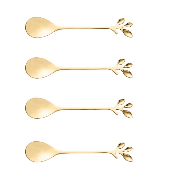 Conjunto 4 Colheres Aço Inox para Chá Leaves Dourado Bon Gourmet Wolff