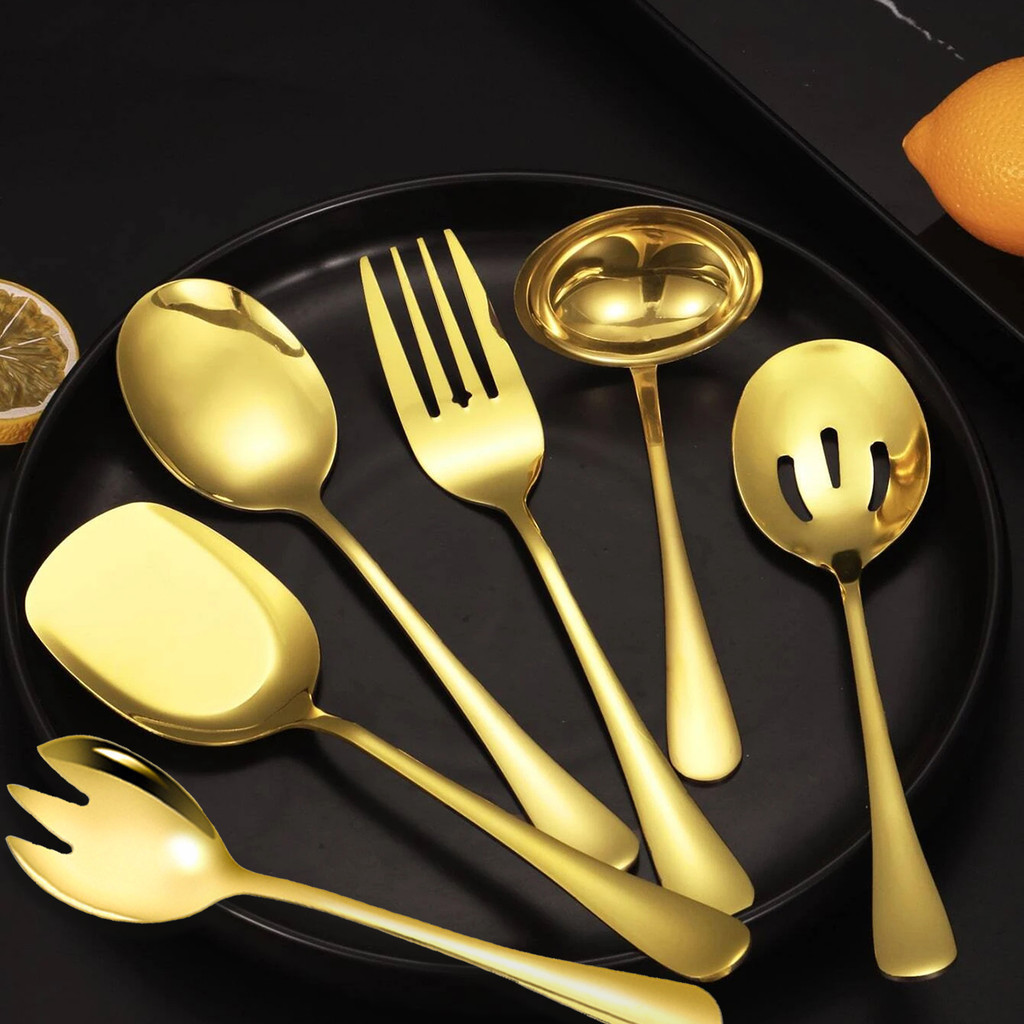 MODUS 5 Peças Talheres Kit De Aço Inox Colheres Espátulas Garfos Dourado Conjunto Colher de Sopa Na Cozinha Talheres De Bom Gosto