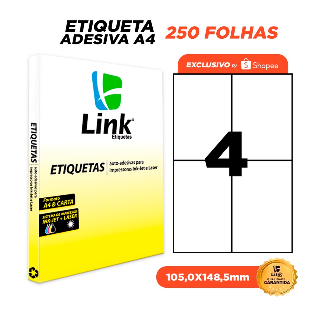 Etiqueta Adesiva A4 105,0mm x 148,5mm 250 Folhas - Link Etiquetas (EXCLUSIVO PARA DESPACHO SHOPEE)