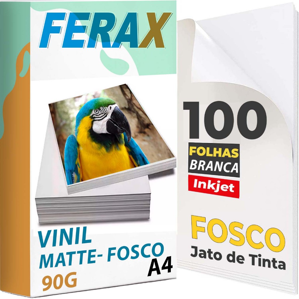 100 Vinil Adesivo Branco Fosco Ferax - Folhas papel vinil A4 Impressora Jato de Tinta - Pode Resinar