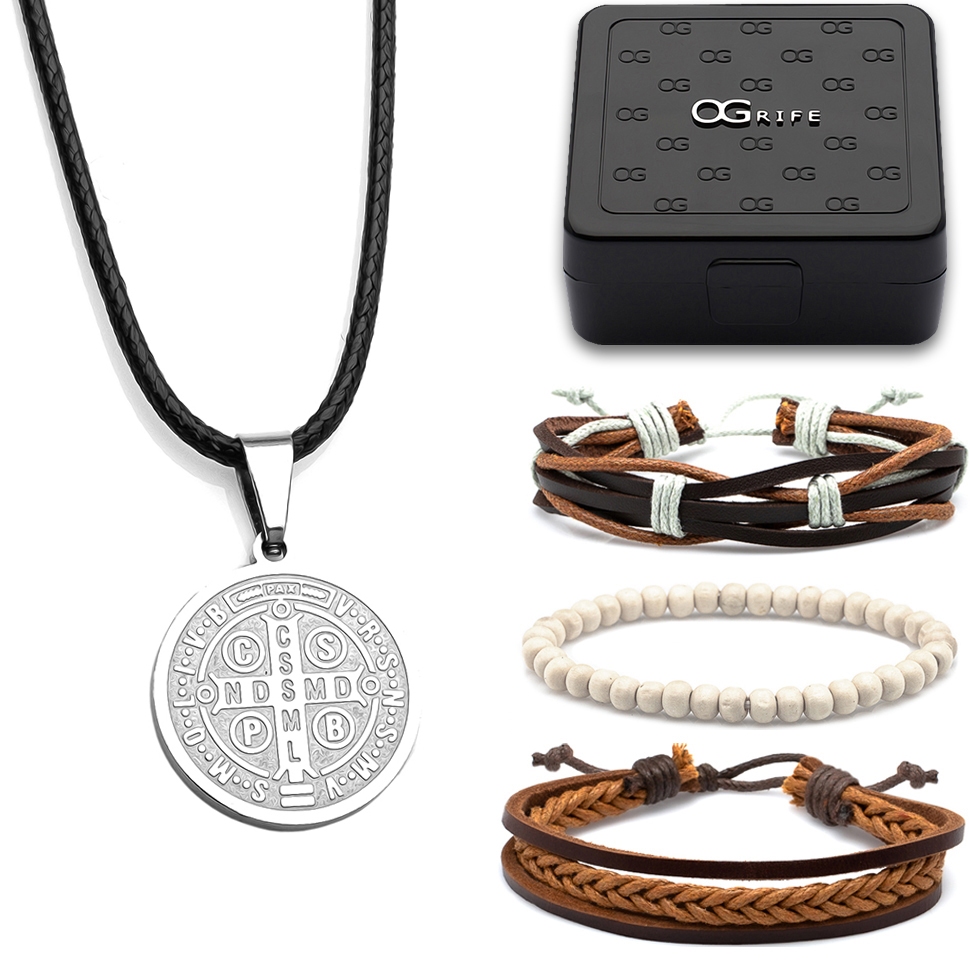 Kit Cordão Pingente São Bento Aço Inox J-1509 Combo Pulseira OGrife