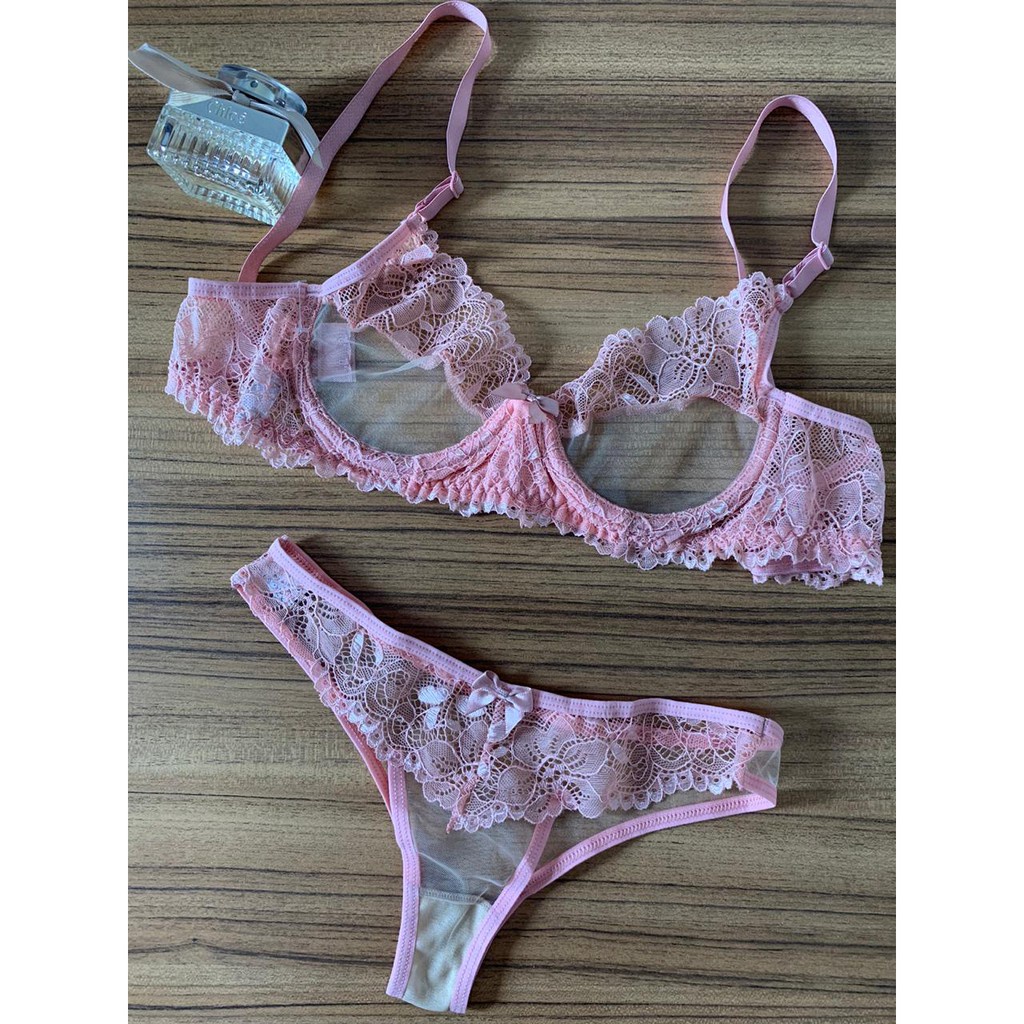 Conjunto Transparente Com Aro Tule Sutia E Calcinha Renda Linha Noite Dia Dos Namorados Moda Verão Cropedd