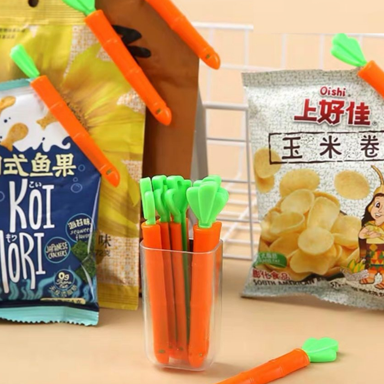 Prendedor de Embalagens Clip Divertido em Formato de Cenoura 5 Unidade + Suporte com Ímã