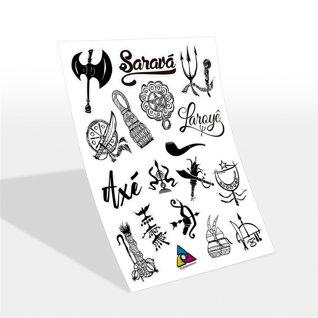 Stikers Cartela De Adesivos Umbanda E Candomblé Axé Ogum Iemanjá Oxúm Oxóssi Xangô Iansã Obaluaê Oxalá Moto Carro Notebook Para Decoração