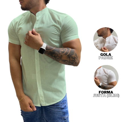 Camisa Masculina Slim Fit Gola Padre Manga Curta