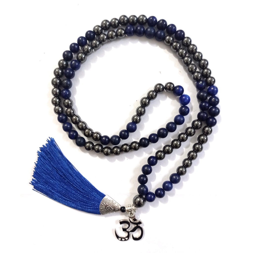 Japamala 108 Contas Hematita Lápis Lazúli 8 mm Pingente Om