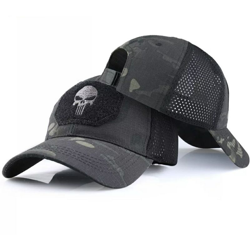 Boné Tático Camuflado com Caveira Bordada em Alto Relevo