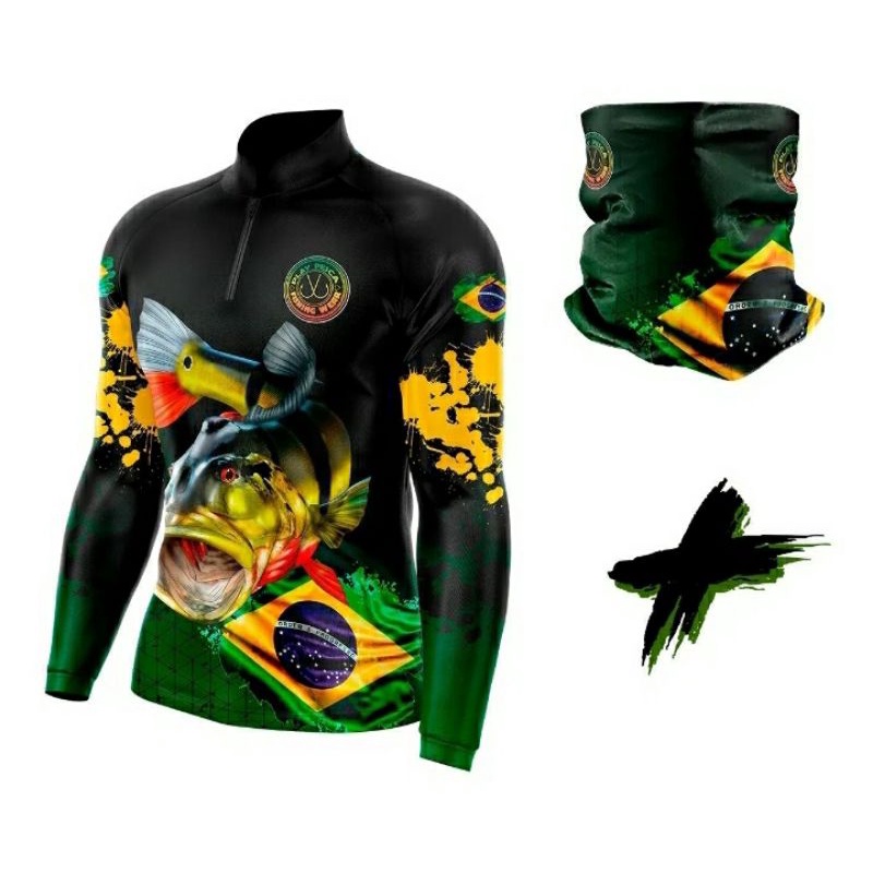 Kit Camisa de Pesca + Bandana Brasil Camiseta Proteção UV50