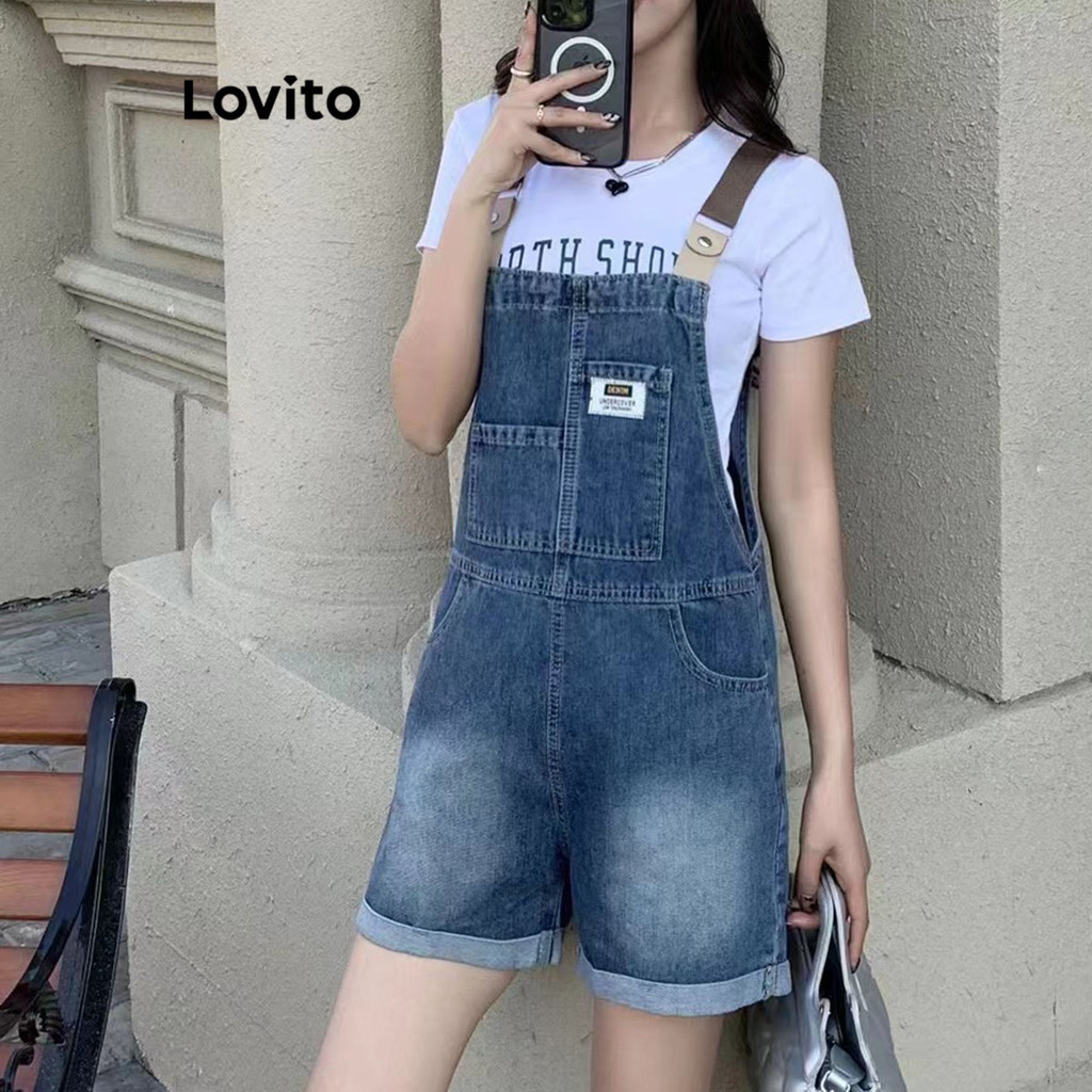 Lovito Macacões Casuais Com Bolso Lavado E Liso Para Mulheres LNE48311
