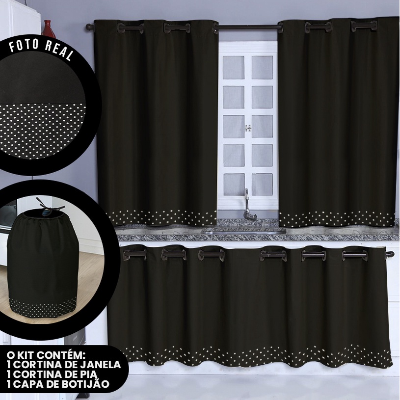 Kit Cozinha Poá - Cortina de Pia, de Janela e Capa de Botijão