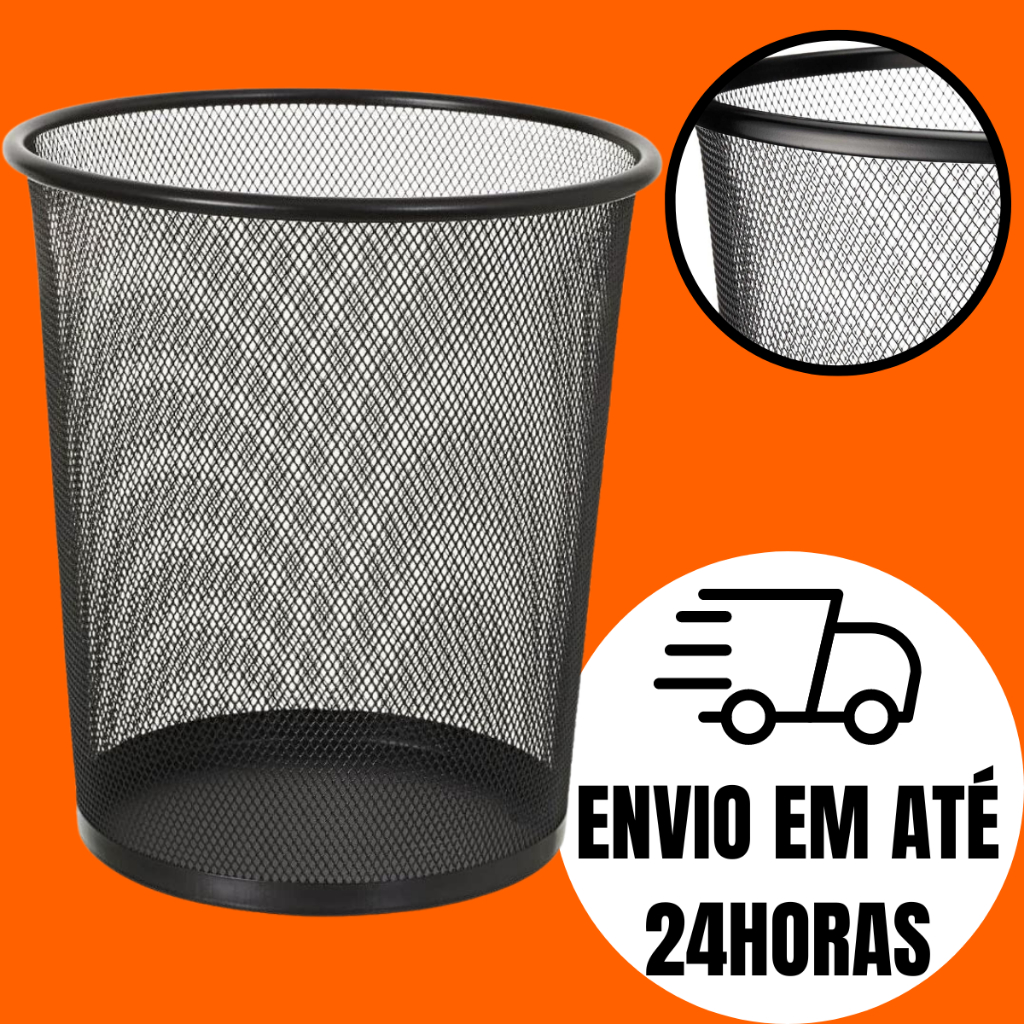 kit Organizador de mesa e Lixeira Metal Aramado Telada Cesto Escritório 10 Litros