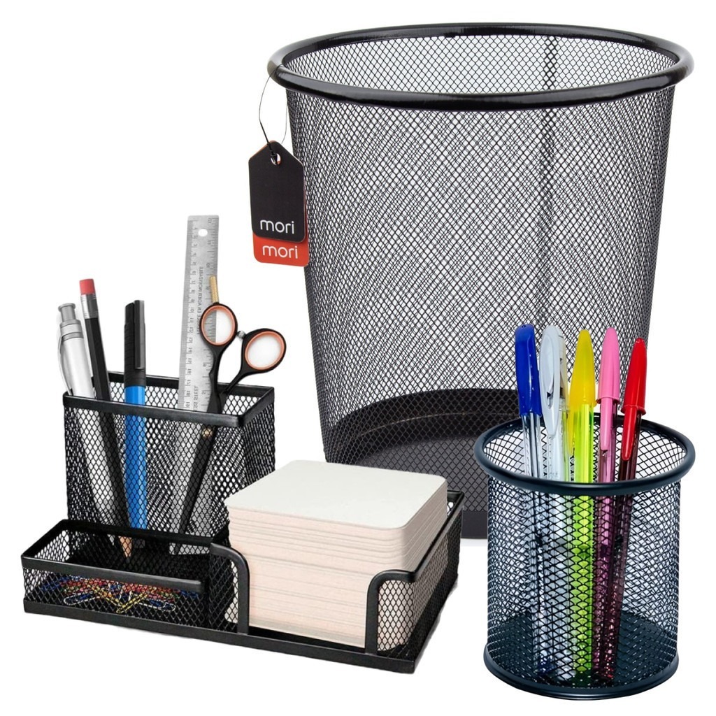 Kit Organizador Porta Caneta e Lixeira de Metal Aramado de Escritório Treco de Mesa 3 Com Divisórias Para Clip Lápis Bloco de Notas Tesoura Borracha