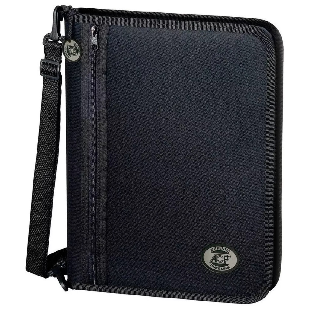 Fichário Teen Preto Universitário Alça Caderno Argolado Organizador de Documentos e Acessório de Escritório Escola Trabalho Leve Resistente Design Elegante Espaçoso Durável Prático Porta-canetas Integrado Com 6 Divisórias Volta Aulas