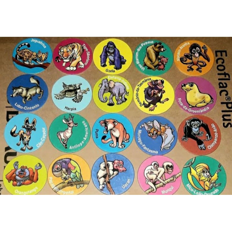 Coleção Completa Tazos Animais em Extinção Ping Pong - N é Elma chips