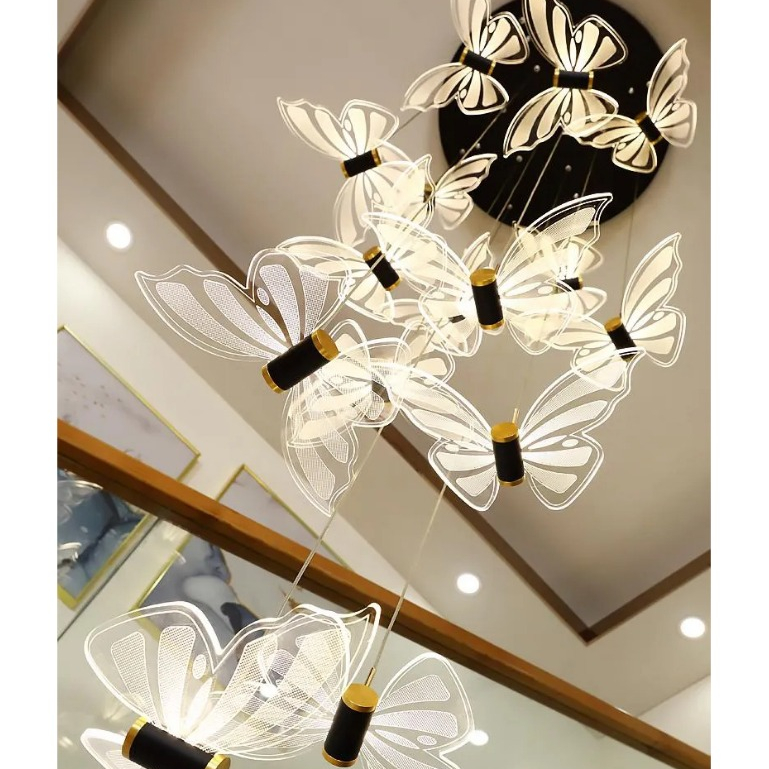 Borboleta pendente de luz do candelabro lâmpada pendurada altura ajustável droplight para jardim quarto enfeite natal