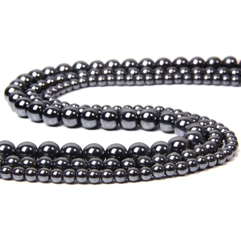 Fio de Pedra Natural Hematita 8mm Aprox 45 Contas