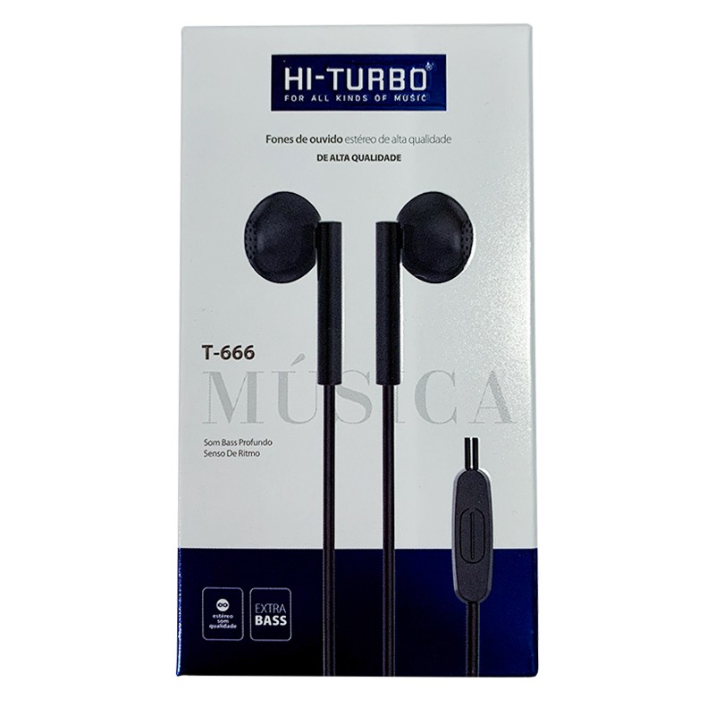 Fones de ouvido com fio TURBO T666, fones de ouvido universais com fio de 3,5 mm de alta qualidade