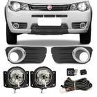 Kit Farol Milha Palio Siena Weekend Com Grade Moldura Preta Aro Cromado Completo com Chicote para Instalação
