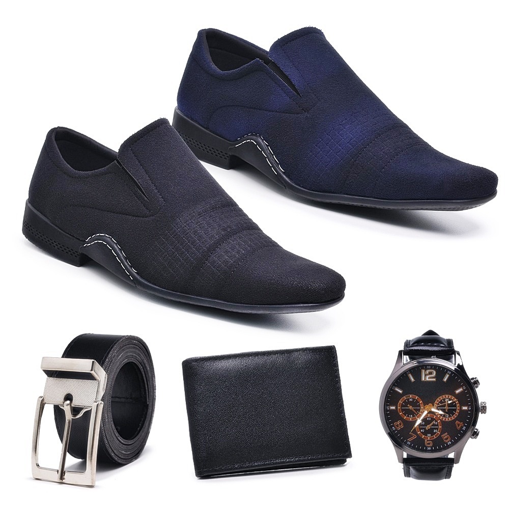 Kit 2 Sapato Social Masculino Camurça + Relógio + Cinto + Carteira