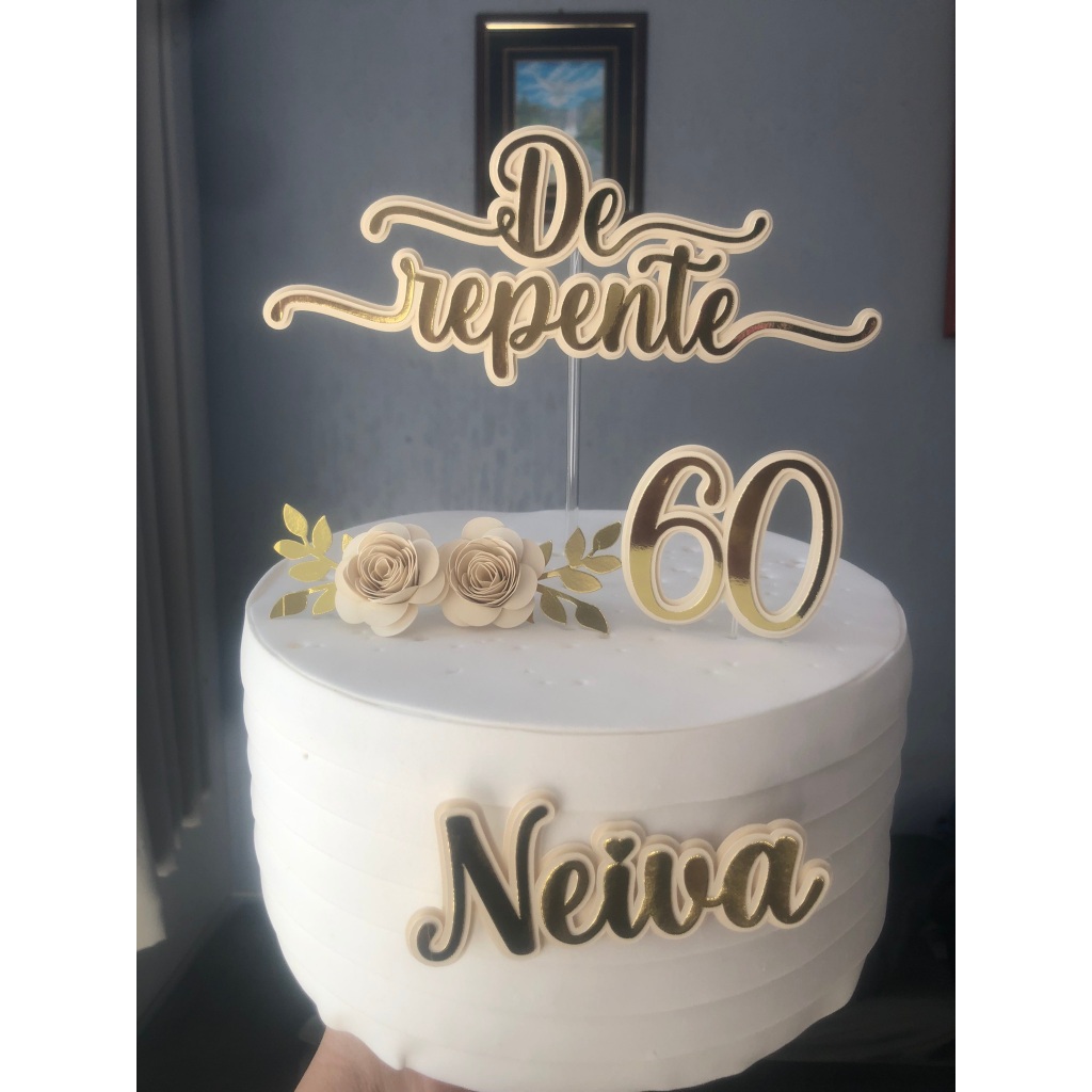 Topo de Bolo "De Repente" personalizado com nome e a idade – Topper de bolo personalizado com flores
