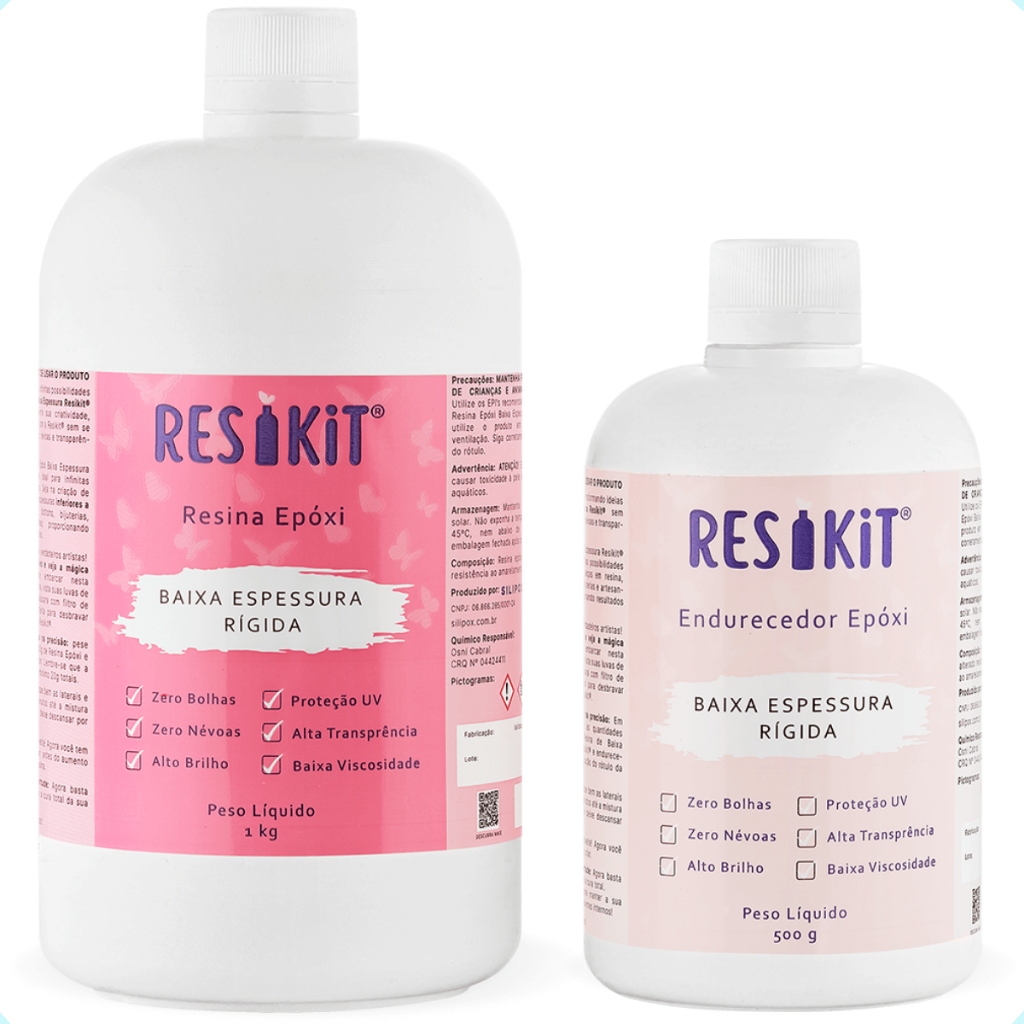 Resina Epóxi RESIKIT Rígida Cristal Uv+ Baixa Viscosidade 1,5kg