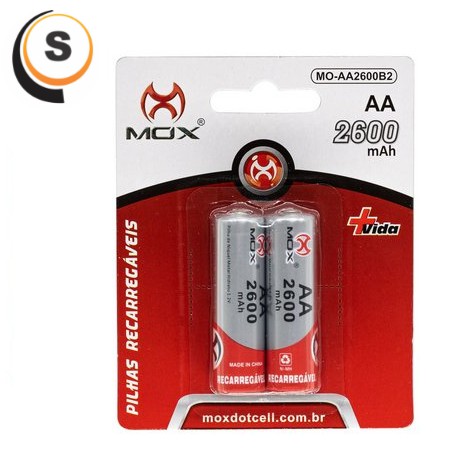 Pilha MOX AA Recarregável 1,2V 2600 mAh NiMH 2 Pilhas
