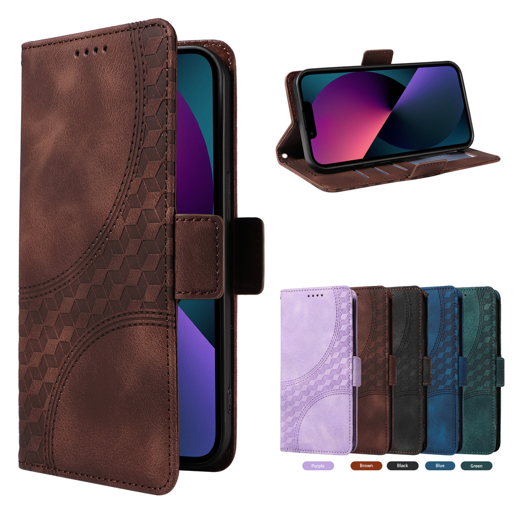 Caixa De Luxo Para Xiaomi 14 13T Poco C65 X5 Pro Redmi 13C 12 4G Nota 13 5G + 5G Emenda Rhombic Designs Carteira De Couro