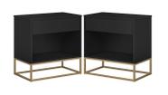 Kit 2 Mesas de Cabeceira Steel Luxo Industrial Base de Aço com 2 Gavetas Puxador Lua - LH Móveis