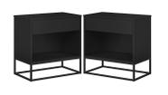 Kit 2 Mesas de Cabeceira Industrial c/ Gaveta e Nicho Preto Base de Ferro Preto