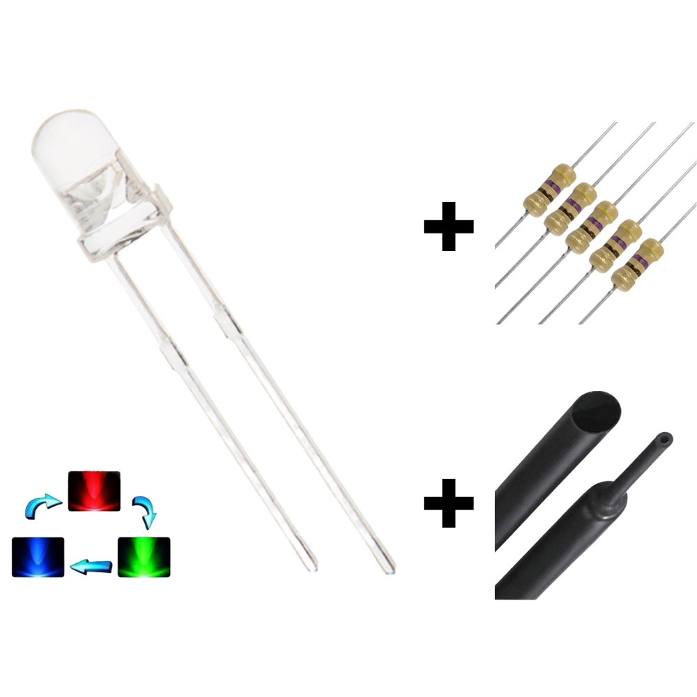 Kit led 3mm Alto Brilho RGB Flash Rápido + Termo + Resistor - 10 unidades