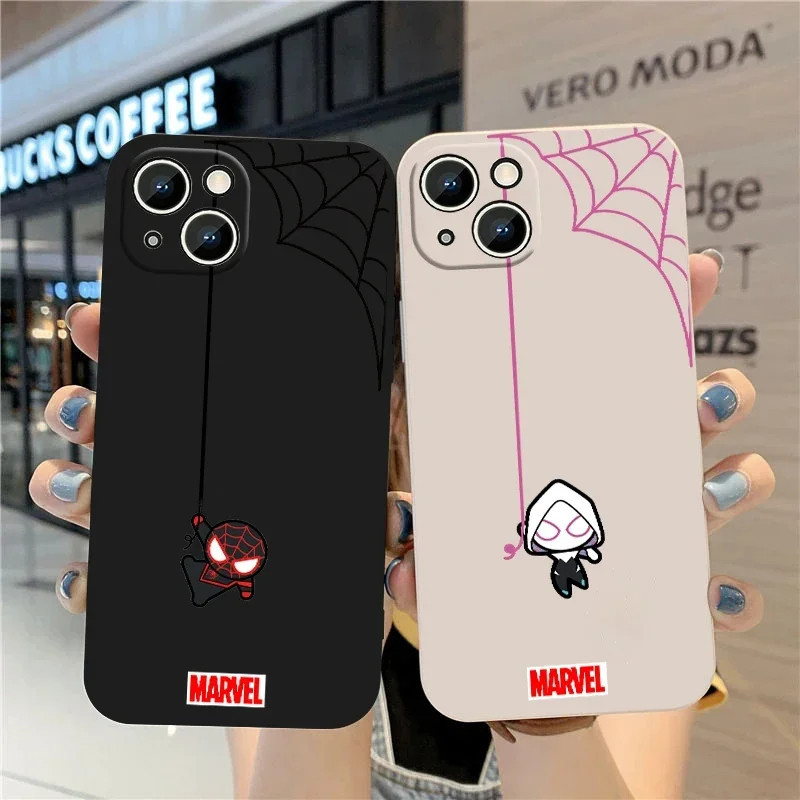 Marvel Spider-man Casal Capa De Telefone Câmera De Silicone Macio Para Iphone 11 12 13 14 15 Pro Max Mini 8 7 Plus Se 20