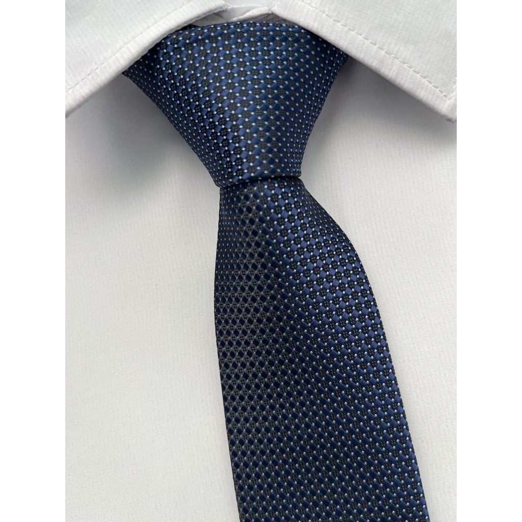 Gravata Semi Slim Azul Escuro pontinhos - 2400 Fios
